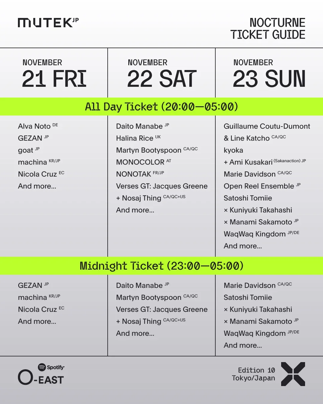 電子音楽とデジタルクリエイティビティの祭典『MUTEK.JP』が、2025年11月に東京・渋谷で開催決定。今年で10周年を迎える本フェスティバルでは、これまで以上に国際的かつ先進的な豪華ラインナップを予定しています。